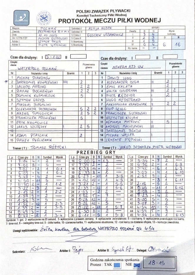 Runda 1: 12.10.2025: mecz nr.1: Waterpolo Poznań - Nekera AZS Uniwersytet Warszawski Waterpolo |