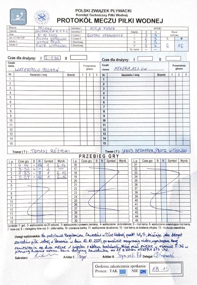 mecz nr.12: 15.11.2025: UKS Neptun Uniwersytet Łódzki - Arkonia Waterpolo Szczecin |